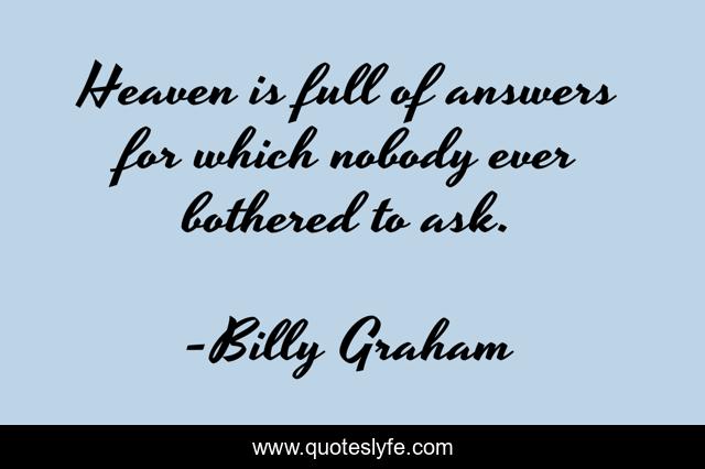 This page presents the quote "Heaven is full of answers for which nobody ever bothered to ask.". Author of this quote is Billy Graham. This quote is about questions-nobody-is-asking, heaven,.