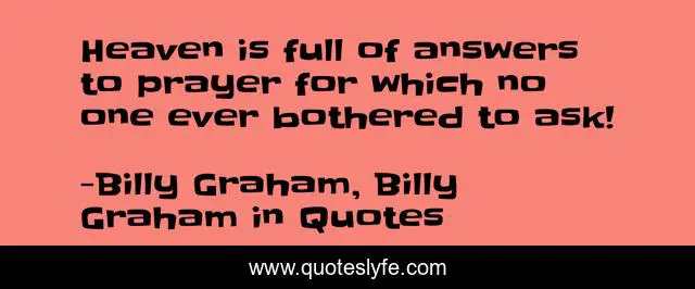 "Billy Graham, Billy Graham in Quotes Quotes." Quoteslyfe.com, 2025. Sat. 06 Dec. 2025. <https://www.quoteslyfe.com/quote/Heaven-is-full-of-answers-to-prayer-114848>.