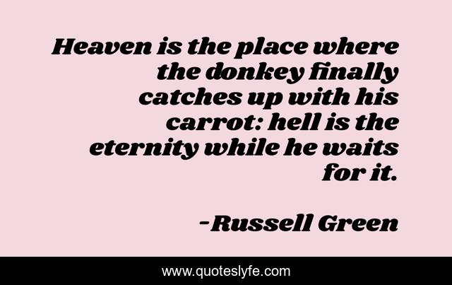 This page presents the quote "Heaven is the place where the donkey finally catches up with his carrot: hell is the eternity while he waits for it.". Author of this quote is Russell Green. This quote is about destiny, fate,.