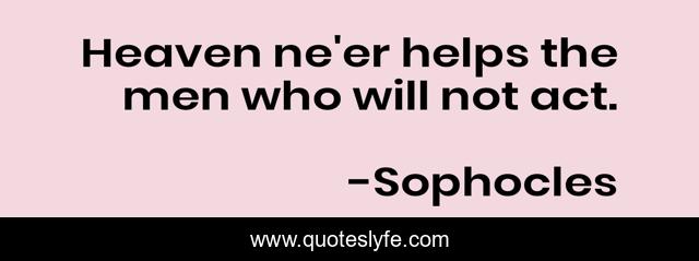 This page presents the quote "Heaven ne'er helps the men who will not act.". Author of this quote is Sophocles. .