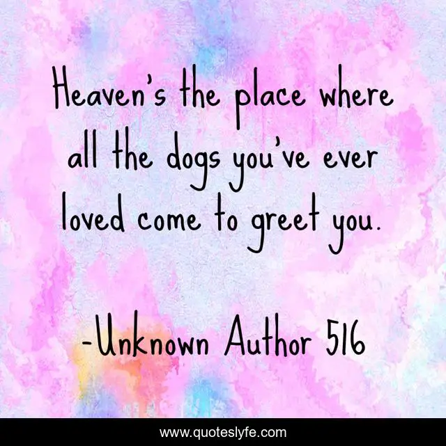 This page presents the quote "Heaven's the place where all the dogs you've ever loved come to greet you.". Author of this quote is Unknown Author 516. This quote is about loved, heaven, place, dogs, greet,.