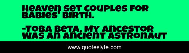 "Toba Beta, My Ancestor Was an Ancient Astronaut Quotes." Quoteslyfe.com, 2025. Tue. 09 Dec. 2025. <https://www.quoteslyfe.com/quote/Heaven-set-couples-for-babies-birth-183438>.