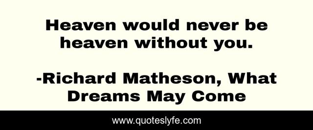 "Richard Matheson, What Dreams May Come Quotes." Quoteslyfe.com, 2025. Sat. 06 Dec. 2025. <https://www.quoteslyfe.com/quote/Heaven-would-never-be-heaven-without-you-335>.
