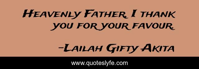 This page presents the quote "Heavenly Father, I thank you for your favour.". Author of this quote is Lailah Gifty Akita. This quote is about thank-you, christian, god, favour, heavenly-father, lailah-gifty-akita-affirmations,.