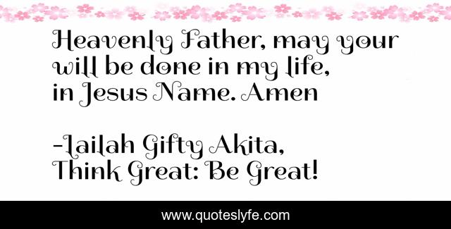 "Lailah Gifty Akita, Think Great: Be Great! Quotes." Quoteslyfe.com, 2025. Mon. 08 Dec. 2025. <https://www.quoteslyfe.com/quote/Heavenly-Father-may-your-will-be-done-114916>.