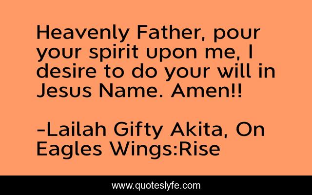 "Lailah Gifty Akita, On Eagles Wings:Rise Quotes." Quoteslyfe.com, 2025. Mon. 08 Dec. 2025. <https://www.quoteslyfe.com/quote/Heavenly-Father-pour-your-spirit-upon-me-98849>.