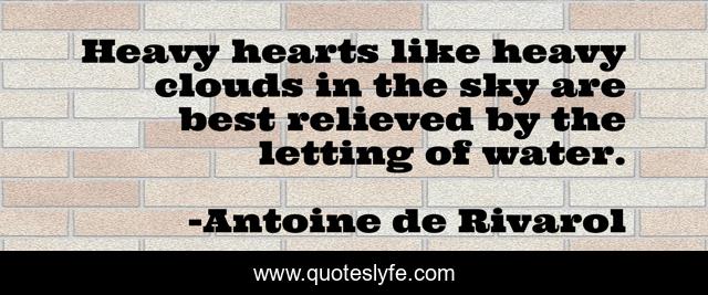 This page presents the quote "Heavy hearts like heavy clouds in the sky are best relieved by the letting of water.". Author of this quote is Antoine de Rivarol. .