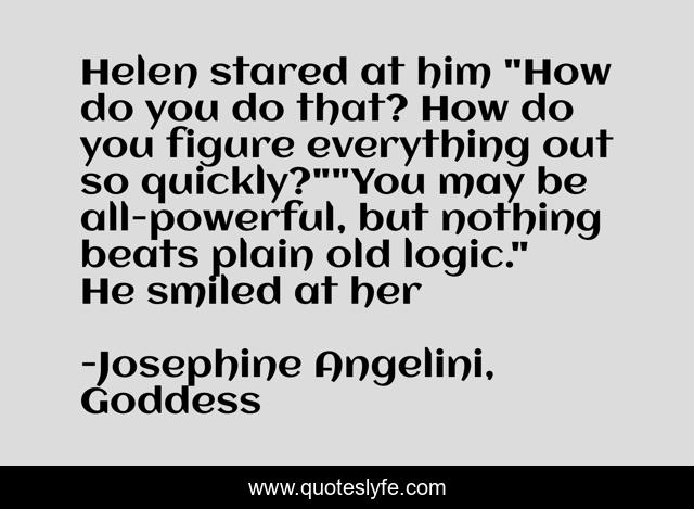 This page presents the quote "Helen stared at him "How do you do that? How do you figure everything out so quickly?""You may be all-powerful, but nothing beats plain old logic." He smiled at her". Author of this quote is Josephine Angelini, Goddess. This quote is about philosophical, reason, logic,.