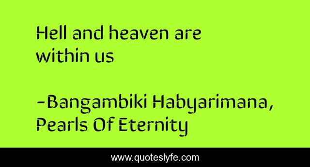 "Bangambiki Habyarimana, Pearls Of Eternity Quotes." Quoteslyfe.com, 2025. Sun. 07 Dec. 2025. <https://www.quoteslyfe.com/quote/Hell-and-heaven-are-within-us-183508>.