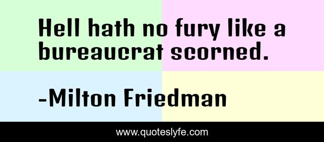 This page presents the quote "Hell hath no fury like a bureaucrat scorned.". Author of this quote is Milton Friedman. This quote is about hell, like, scorned,.