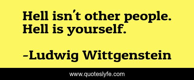 This page presents the quote "Hell isn't other people. Hell is yourself.". Author of this quote is Ludwig Wittgenstein. This quote is about hell, solipsism,.