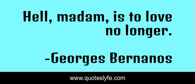 This page presents the quote "Hell, madam, is to love no longer.". Author of this quote is Georges Bernanos. This quote is about hell, to love, love, affection,.