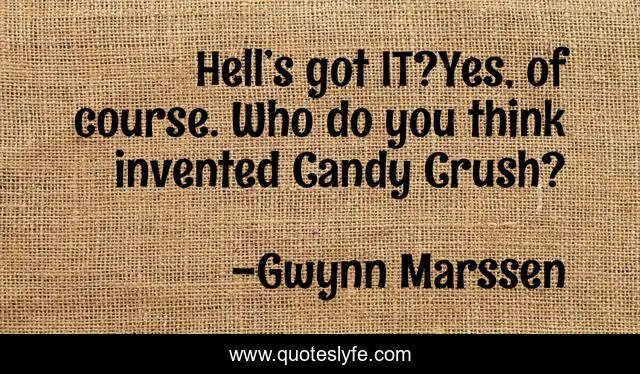 This page presents the quote "Hell’s got IT?Yes, of course. Who do you think invented Candy Crush?". Author of this quote is Gwynn Marssen. This quote is about hell, humor,.