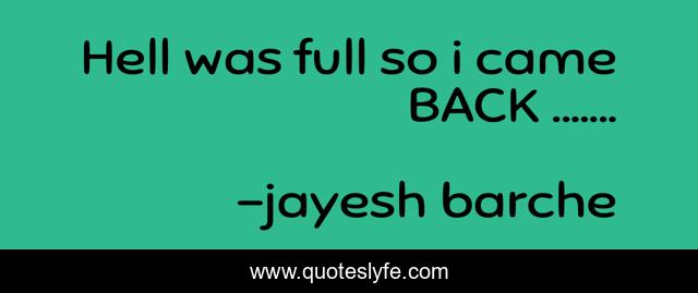 This page presents the quote "Hell was full so i came BACK .......". Author of this quote is jayesh barche. .