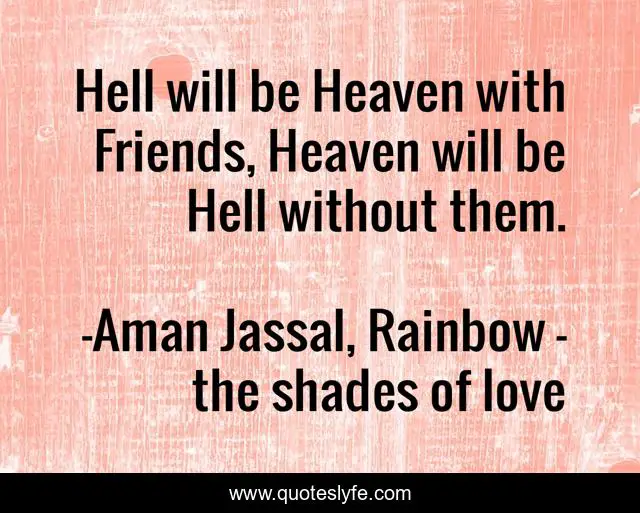 "Aman Jassal, Rainbow - the shades of love Quotes." Quoteslyfe.com, 2025. Tue. 09 Dec. 2025. <https://www.quoteslyfe.com/quote/Hell-will-be-Heaven-with-Friends-Heaven-183617>.