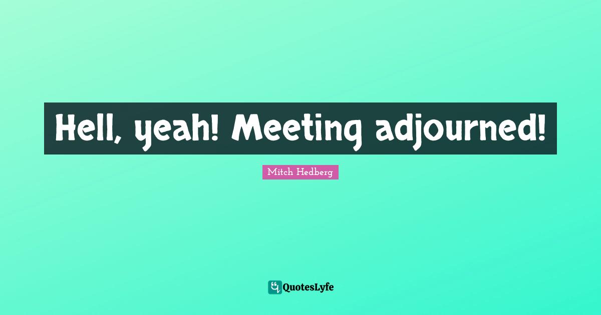 "Mitch Hedberg Quotes." Quoteslyfe.com, 2026. Tue. 13 Jan. 2026. <https://www.quoteslyfe.com/quote/Hell-yeah-Meeting-adjourned-902099>.