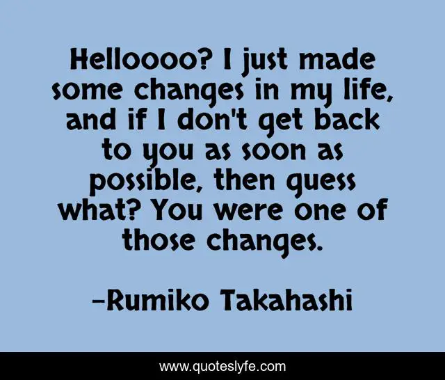 This page presents the quote "Helloooo? I just made some changes in my life, and if I don't get back to you as soon as possible, then guess what? You were one of those changes.". Author of this quote is Rumiko Takahashi. .