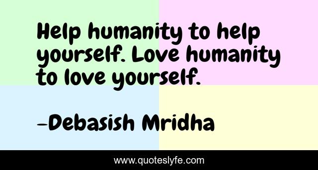 This page presents the quote "Help humanity to help yourself. Love humanity to love yourself.". Author of this quote is Debasish Mridha. This quote is about help-yourself, debasish, love, mridha, philosophy, inspirational, enthusiasm, humanity, affection,.