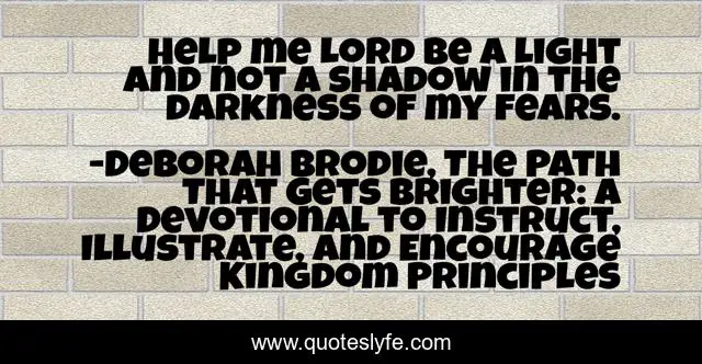 "Deborah Brodie, The Path That Gets Brighter: A Devotional to Instruct, Illustrate, and Encourage Kingdom Principles Quotes." Quoteslyfe.com, 2025. Fri. 05 Dec. 2025. <https://www.quoteslyfe.com/quote/Help-me-Lord-be-a-Light-and-85295>.