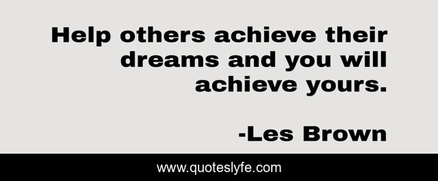 This page presents the quote "Help others achieve their dreams and you will achieve yours.". Author of this quote is Les Brown. This quote is about help others, help,.