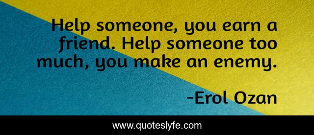 This page presents the quote "Help someone, you earn a friend. Help someone too much, you make an enemy.". Author of this quote is Erol Ozan. This quote is about empathy, life-lesson, human-nature, helping, life-lessons, altruism,.