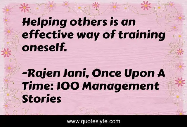 This page presents the quote "Helping others is an effective way of training oneself.". Author of this quote is Rajen Jani, Once Upon A Time: 100 Management Stories. This quote is about motivation, communication, sales, anger, improvement, quality, management, knowledge, strategy,.