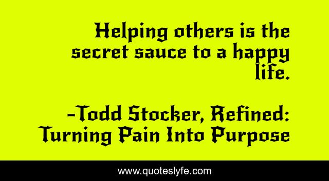 "Todd Stocker, Refined: Turning Pain Into Purpose Quotes." Quoteslyfe.com, 2025. Fri. 05 Dec. 2025. <https://www.quoteslyfe.com/quote/Helping-others-is-the-secret-sauce-to-16357>.
