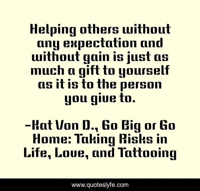 "Kat Von D., Go Big or Go Home: Taking Risks in Life, Love, and Tattooing Quotes." Quoteslyfe.com, 2025. Sat. 13 Dec. 2025. <https://www.quoteslyfe.com/quote/Helping-others-without-any-expectation-and-without-190161>.