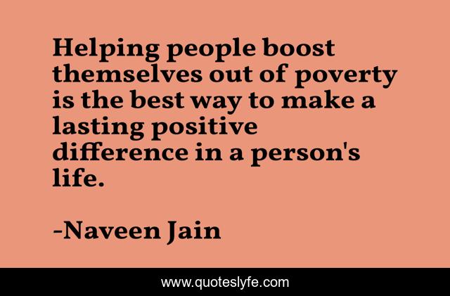This page presents the quote "Helping people boost themselves out of poverty is the best way to make a lasting positive difference in a person's life.". Author of this quote is Naveen Jain. This quote is about life, poverty, best,.