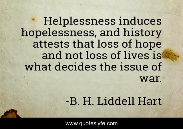 "B. H. Liddell Hart Quotes." Quoteslyfe.com, 2025. Sun. 07 Dec. 2025. <https://www.quoteslyfe.com/quote/Helplessness-induces-hopelessness-and-history-attests-that-283059>.