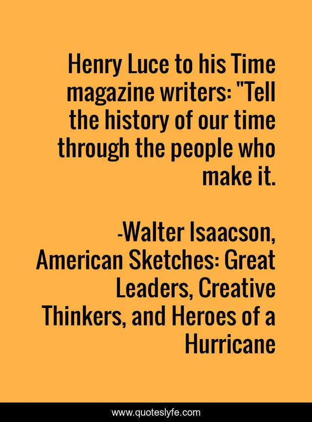 "Walter Isaacson, American Sketches: Great Leaders, Creative Thinkers, and Heroes of a Hurricane Quotes." Quoteslyfe.com, 2025. Sat. 06 Dec. 2025. <https://www.quoteslyfe.com/quote/Henry-Luce-to-his-Time-magazine-writers-47973>.