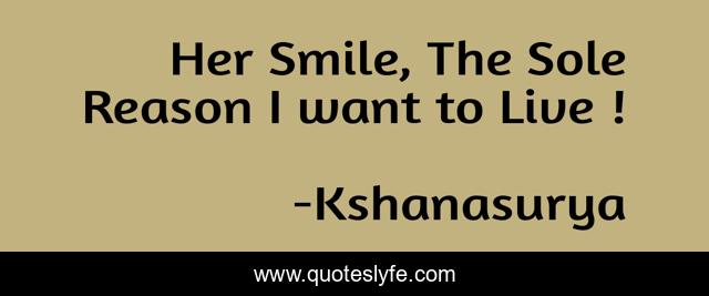 This page presents the quote "Her Smile, The Sole Reason I want to Live !". Author of this quote is Kshanasurya. This quote is about love, affection,.
