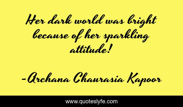 This page presents the quote "Her dark world was bright because of her sparkling attitude!". Author of this quote is Archana Chaurasia Kapoor. This quote is about blind, http-drishti-co, darkness, positivity, attitude, behaviour, bright, blindness,.