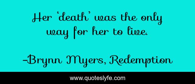 "Brynn Myers, Redemption Quotes." Quoteslyfe.com, 2025. Sat. 06 Dec. 2025. <https://www.quoteslyfe.com/quote/Her-death-was-the-only-way-for-229666>.