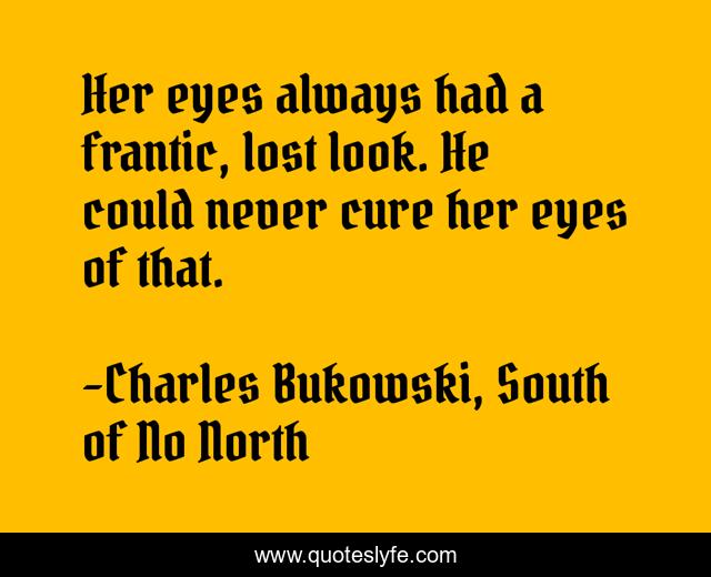 This page presents the quote "Her eyes always had a frantic, lost look. He could never cure her eyes of that.". Author of this quote is Charles Bukowski, South of No North. This quote is about love, affection, misery,.