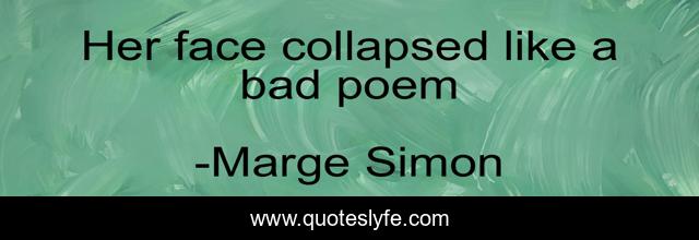 "Marge Simon Quotes." Quoteslyfe.com, 2025. Fri. 05 Dec. 2025. <https://www.quoteslyfe.com/quote/Her-face-collapsed-like-a-bad-poem-256391>.