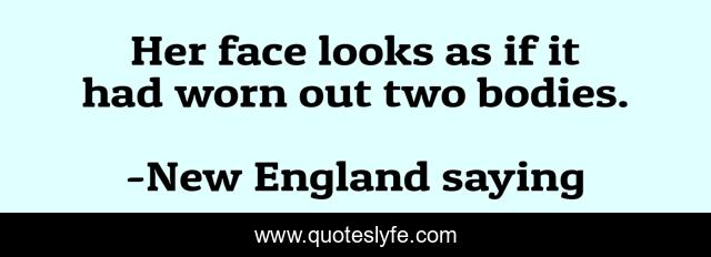 This page presents the quote "Her face looks as if it had worn out two bodies.". Author of this quote is New England saying. This quote is about personal, appearance,.