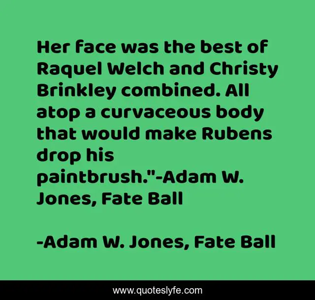 Her face was the best of Raquel Welch and Christy Brinkley combined. All atop a curvaceous body that would make Rubens drop his paintbrush."-Adam W. Jones, Fate Ball