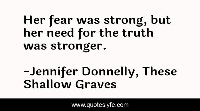 This page presents the quote "Her fear was strong, but her need for the truth was stronger.". Author of this quote is Jennifer Donnelly, These Shallow Graves. This quote is about mgg, jennifer-donnelly, truth, fear, strong, the-shallow-graves,.