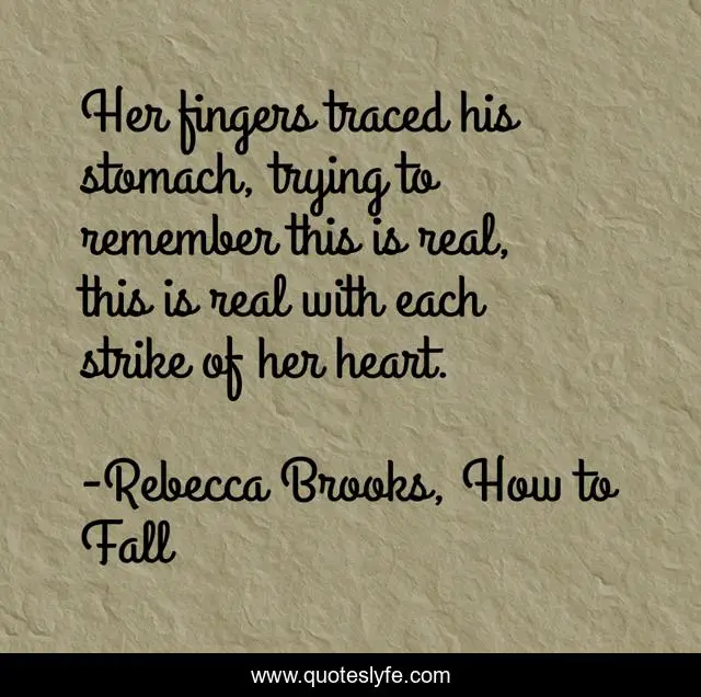 "Rebecca Brooks, How to Fall Quotes." Quoteslyfe.com, 2025. Sat. 06 Dec. 2025. <https://www.quoteslyfe.com/quote/Her-fingers-traced-his-stomach-trying-to-154978>.