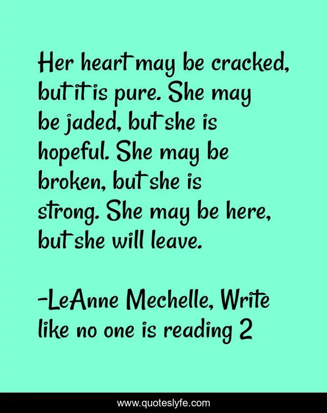 "LeAnne Mechelle, Write like no one is reading 2 Quotes." Quoteslyfe.com, 2025. Sat. 06 Dec. 2025. <https://www.quoteslyfe.com/quote/Her-heart-may-be-cracked-but-it-81540>.