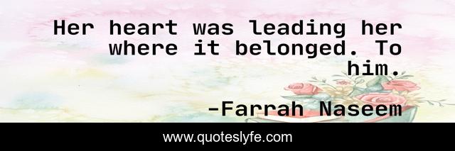 This page presents the quote "Her heart was leading her where it belonged. To him.". Author of this quote is Farrah Naseem. This quote is about farrah-naseem, sacred, heart,.
