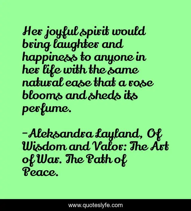"Aleksandra Layland, Of Wisdom and Valor: The Art of War. The Path of Peace. Quotes." Quoteslyfe.com, 2025. Mon. 08 Dec. 2025. <https://www.quoteslyfe.com/quote/Her-joyful-spirit-would-bring-laughter-and-44842>.