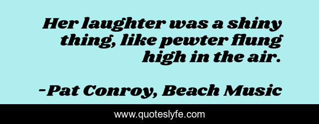 This page presents the quote "Her laughter was a shiny thing, like pewter flung high in the air.". Author of this quote is Pat Conroy, Beach Music. .