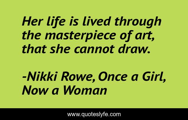 "Nikki Rowe, Once a Girl, Now a Woman Quotes." Quoteslyfe.com, 2025. Tue. 09 Dec. 2025. <https://www.quoteslyfe.com/quote/Her-life-is-lived-through-the-masterpiece-92144>.