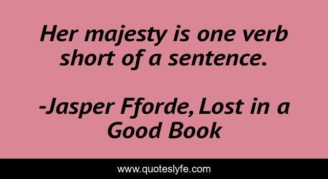 "Jasper Fforde, Lost in a Good Book Quotes." Quoteslyfe.com, 2025. Tue. 09 Dec. 2025. <https://www.quoteslyfe.com/quote/Her-majesty-is-one-verb-short-of-6755>.