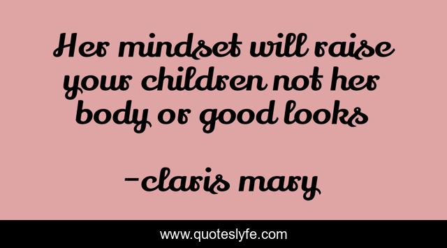 This page presents the quote "Her mindset will raise your children not her body or good looks". Author of this quote is claris mary. .