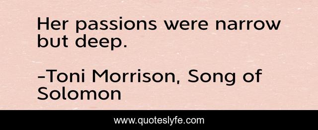 "Toni Morrison, Song of Solomon Quotes." Quoteslyfe.com, 2025. Sat. 06 Dec. 2025. <https://www.quoteslyfe.com/quote/Her-passions-were-narrow-but-deep-53256>.