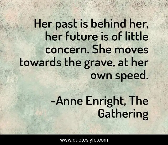 This page presents the quote "Her past is behind her, her future is of little concern. She moves towards the grave, at her own speed.". Author of this quote is Anne Enright, The Gathering. .