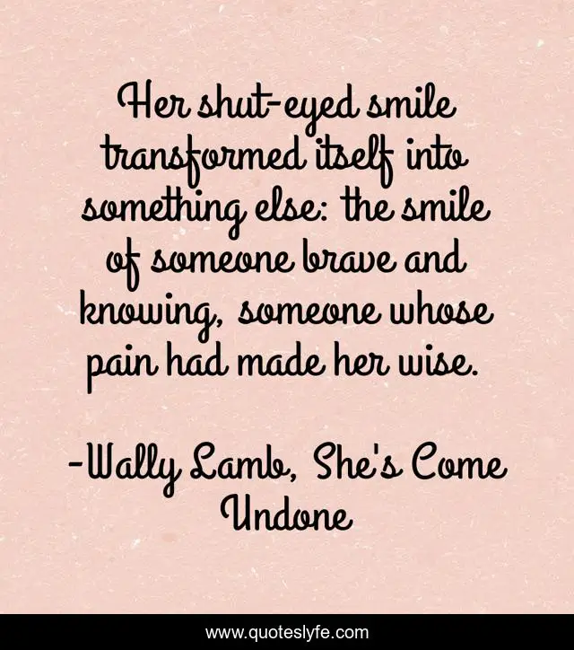 This page presents the quote "Her shut-eyed smile transformed itself into something else: the smile of someone brave and knowing, someone whose pain had made her wise.". Author of this quote is Wally Lamb, She's Come Undone. This quote is about pain, wisdom,.